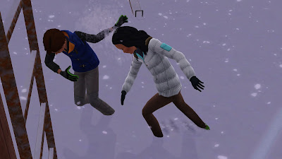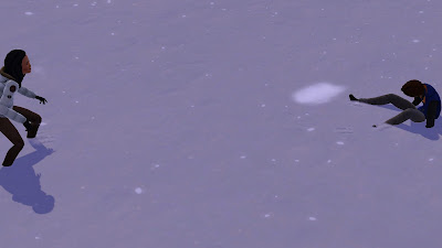"NO NÄIN!" Delilah nauroi ja paiskasi lumipallon Tediä kohti.