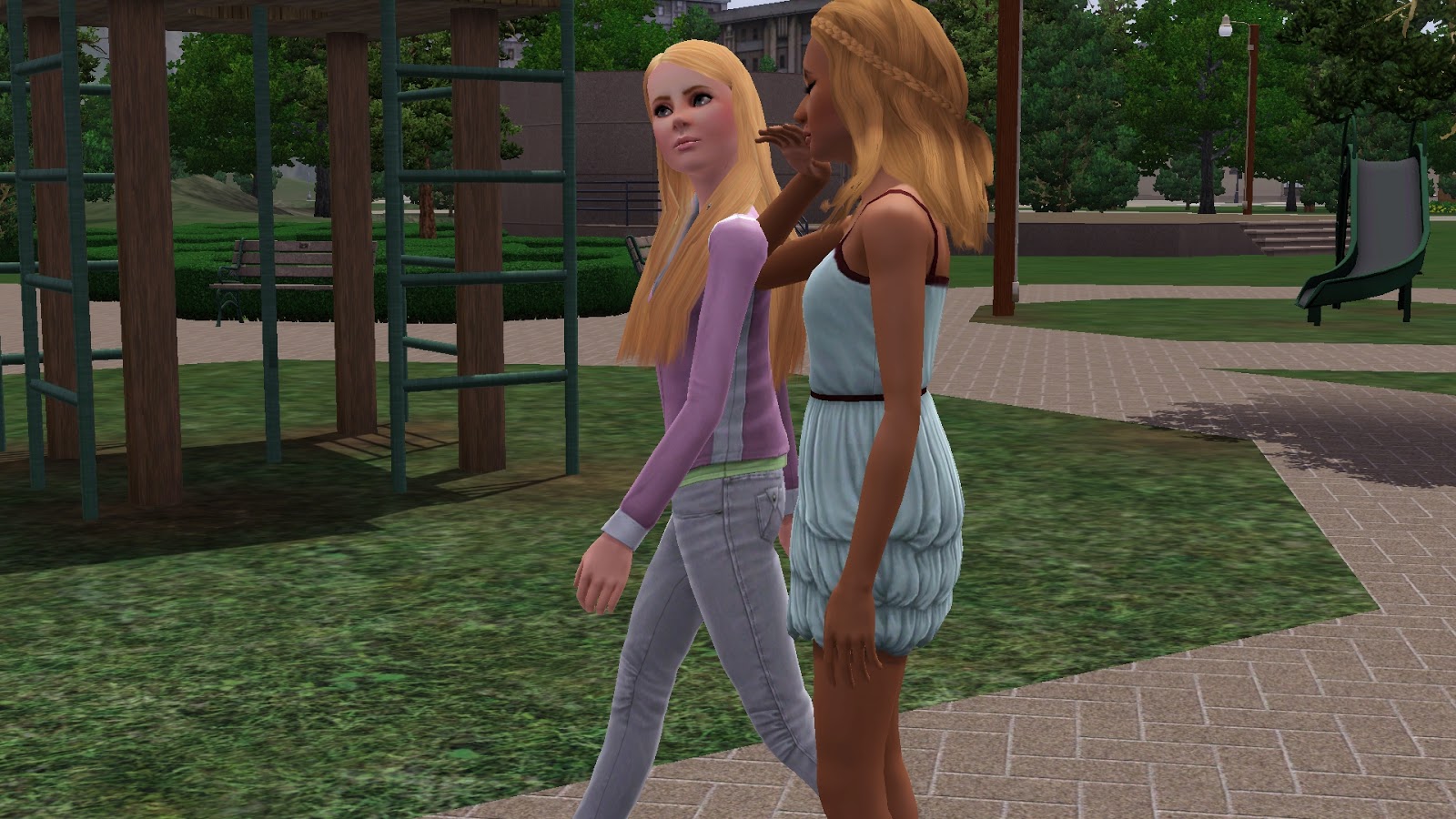 "Jep, mennään juttelemaan," iholtaan tummempi tyttö sanoi.